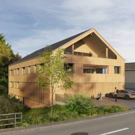 Das Gebäude entsteht in massiver Bauweise und erfüllt die aktuellen SIA-Normen für Wärme- und Schallschutz. Naturnahe Materialien, eine langlebige Holzschalung sowie eine integrierte Photovoltaikanlage sorgen für nachhaltigen Wohnkomfort. Beheizt wird mit einer Luft-Wasser-Wärmepumpe über eine komfortable Fussbodenheizung, das Warmwasser wird zentral aufbereitet. Die PV-Anlage auf dem Dach liefert erneuerbare Energie, die Tiefgarage ist für E-Ladestationen vorbereitet.